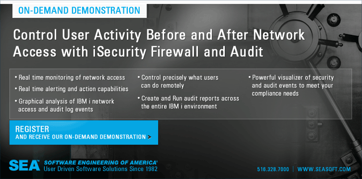 Send your IBM i Security Related News and Events! Sponsor the SecureMyi.com Security Newsletter © Copyright 2012 - SecureMyi.com, all rights reserved SecureMyi.com | St Louis MO 63017 |